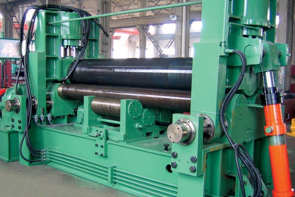 四輥卷板機(jī)卷制時(shí)板料對(duì)中方便,工藝通用性廣,可以矯正卷制時(shí)產(chǎn)生的扭斜、錯(cuò)邊等缺陷;同時(shí)一次上料即可完成板料端部預(yù)彎和卷制成形,剩余直邊小,是卷制圓形、弧形工件的理想設(shè)備。